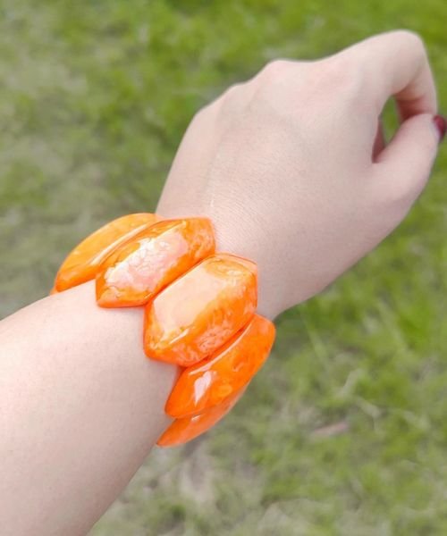 Casual Wear Resin Funky Orange Mix Stretchable Bangle