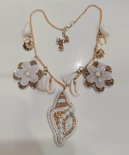 Party Wear Off-White/Gold Beachy Embellished Necklace